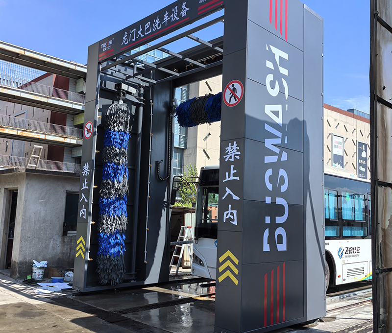 鐵士大型移動(dòng)式洗車機(jī),適用于清洗大型客車外表面的灰塵、油污及其它污漬。通過水、清洗劑及清洗刷的作用自動(dòng)清洗車輛的車頭、兩側(cè)、車尾及車頂,洗車機(jī)由移動(dòng)式刷洗系統(tǒng)、電控系統(tǒng)、水供給系統(tǒng)、洗滌劑供給系統(tǒng)等組成,并可配置污水循環(huán)處理系統(tǒng)。當(dāng)車輛至清洗區(qū)指定位置停止后,洗車機(jī)在行走軌道上運(yùn)動(dòng),自動(dòng)進(jìn)行洗滌劑噴灑,車頭、兩側(cè)、車尾及車頂?shù)乃⑾春蜎_洗工作,清洗后車體外表面無灰塵、泥土和其它附著物。